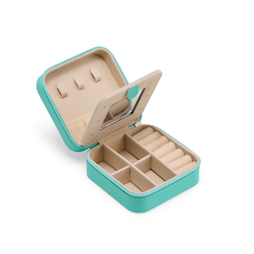 - Porta-joias de couro sintético com espelho;