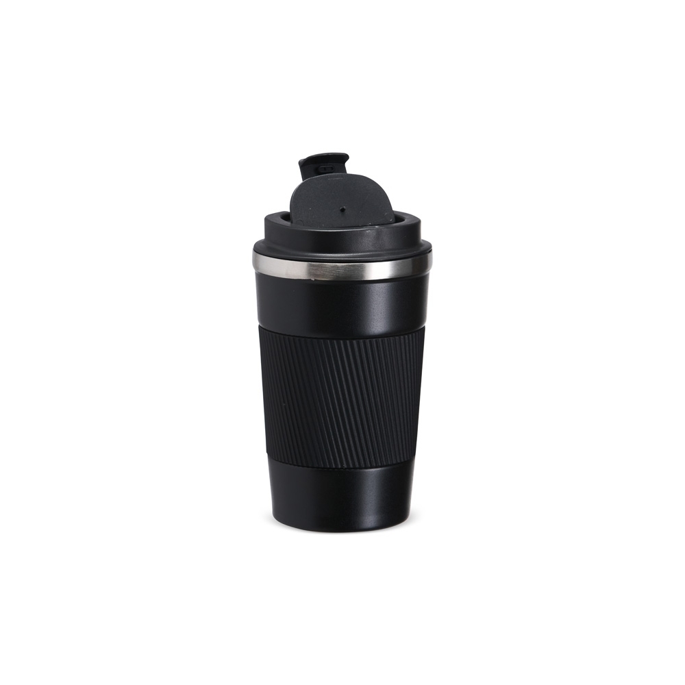 Copo térmico em inox 304; pintura eletrostática; base antiderrapante; capacidade máxima de 350ml; parede dupla e vedação a vácuo; tampa rosqueável em plástico com trava protetora no bocal; luva removível em silicone; Altura: 15,5 cm; Largura: 8,9 cm; Circunferência: 26,8 cm; Peso aproximado (g): 256.