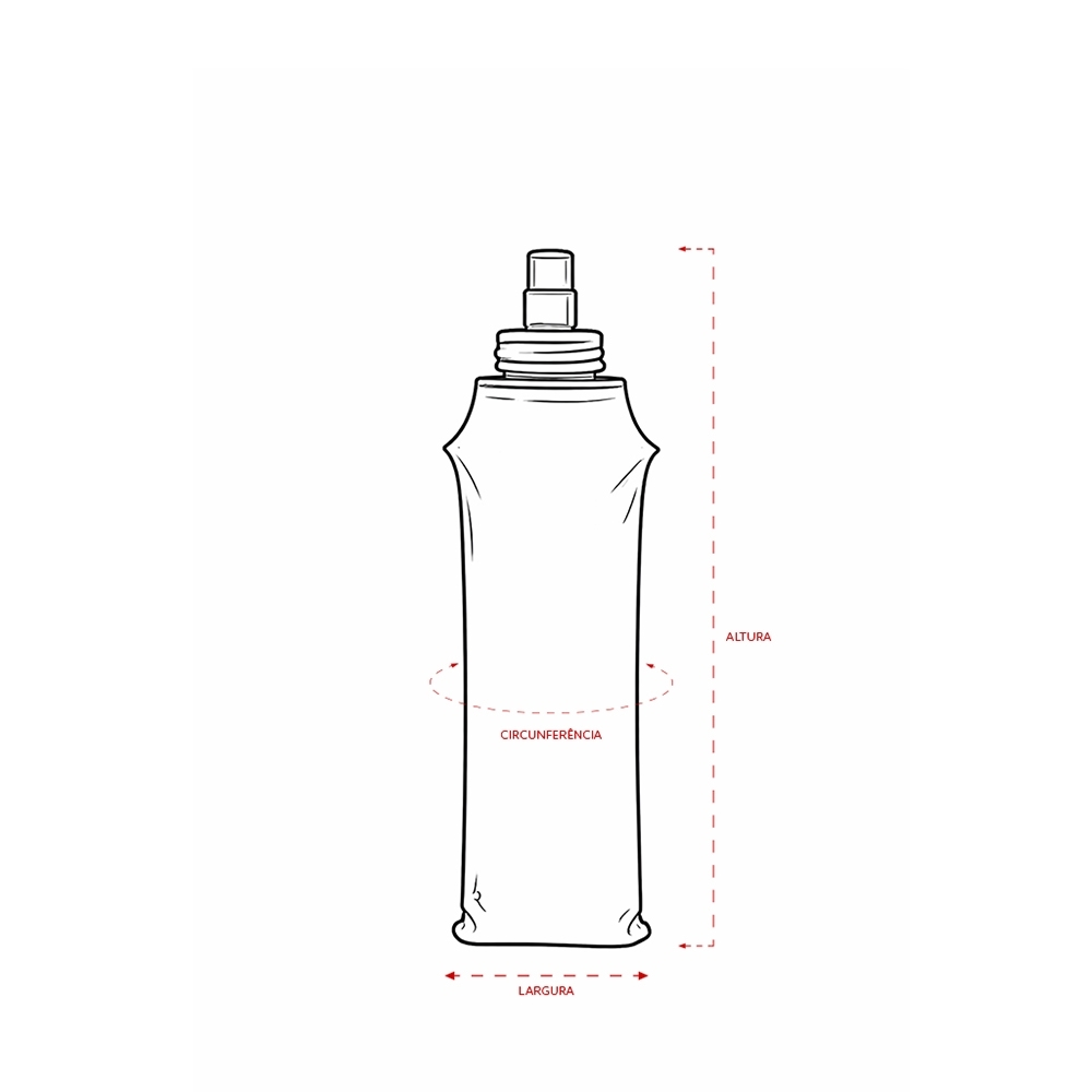 Squeeze dobrável; capacidade para até 500ml; Feito em poliuretano termoplástico (TPU) livre de BPA; bico rosqueável em plástico e topo em silicone macio, que permite a ingestão de líquidos ao morder levemente a ponta após inclinar o squeeze; Altura: 26 cm; Largura: 8,5 cm; Profundidade: 3,2 cm; Medidas aproximadas para gravação (CxL): 18 cm x 6 cm; Peso aproximado (g): 30.