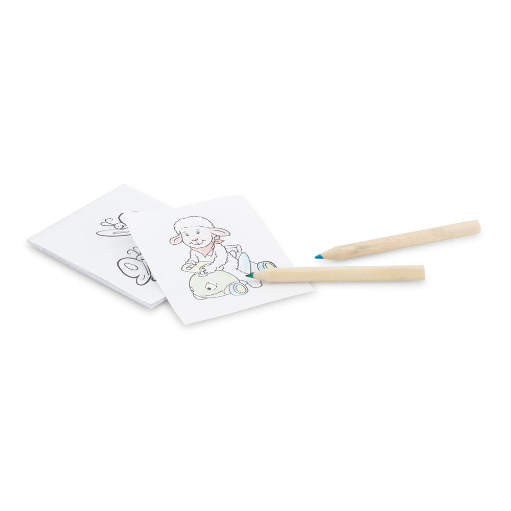 • Incluso 6 mini lápis de cor e 15 cartões diferentes para pintar;