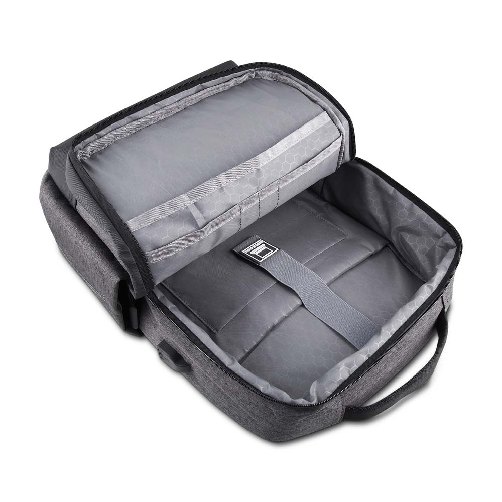- compartimento interno para notebook de até 15,6” e tablet;