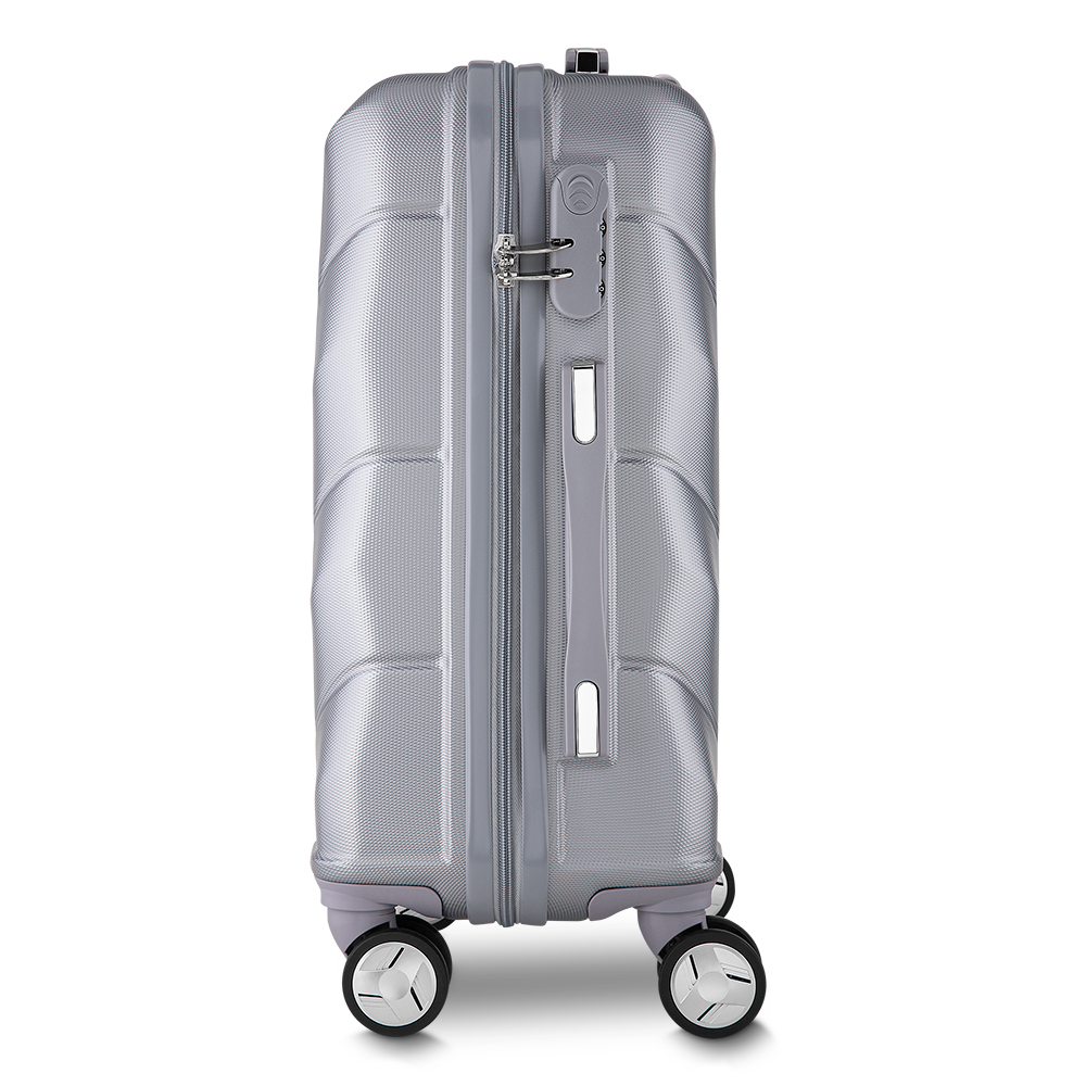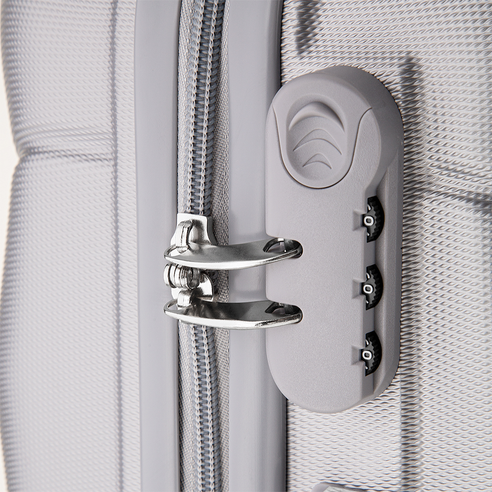 - Mala viagem pequena em ABS (Estireno de acrilonitrilo e butadieno) com interior em poliéster 210D;
