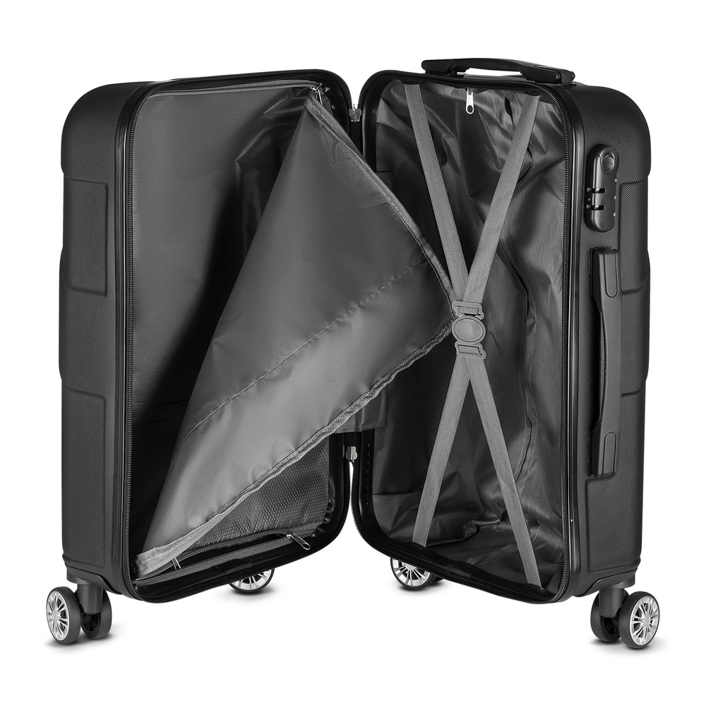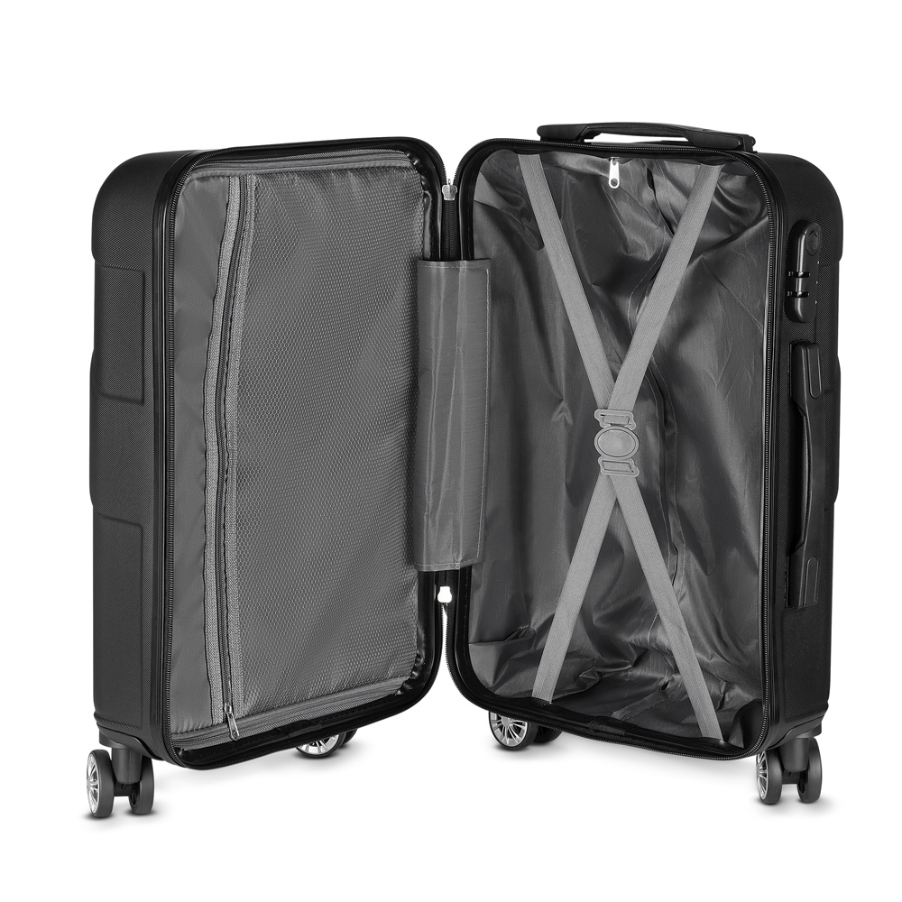 • Mala de bordo em plástico ABS e interior em nylon 210D;